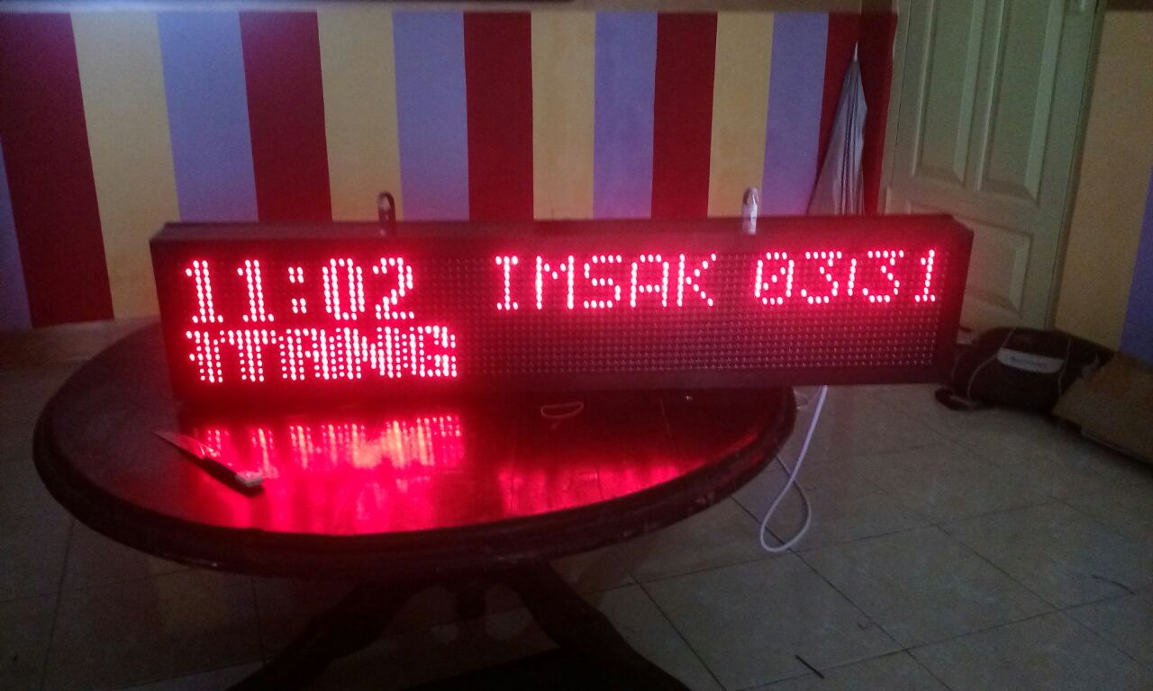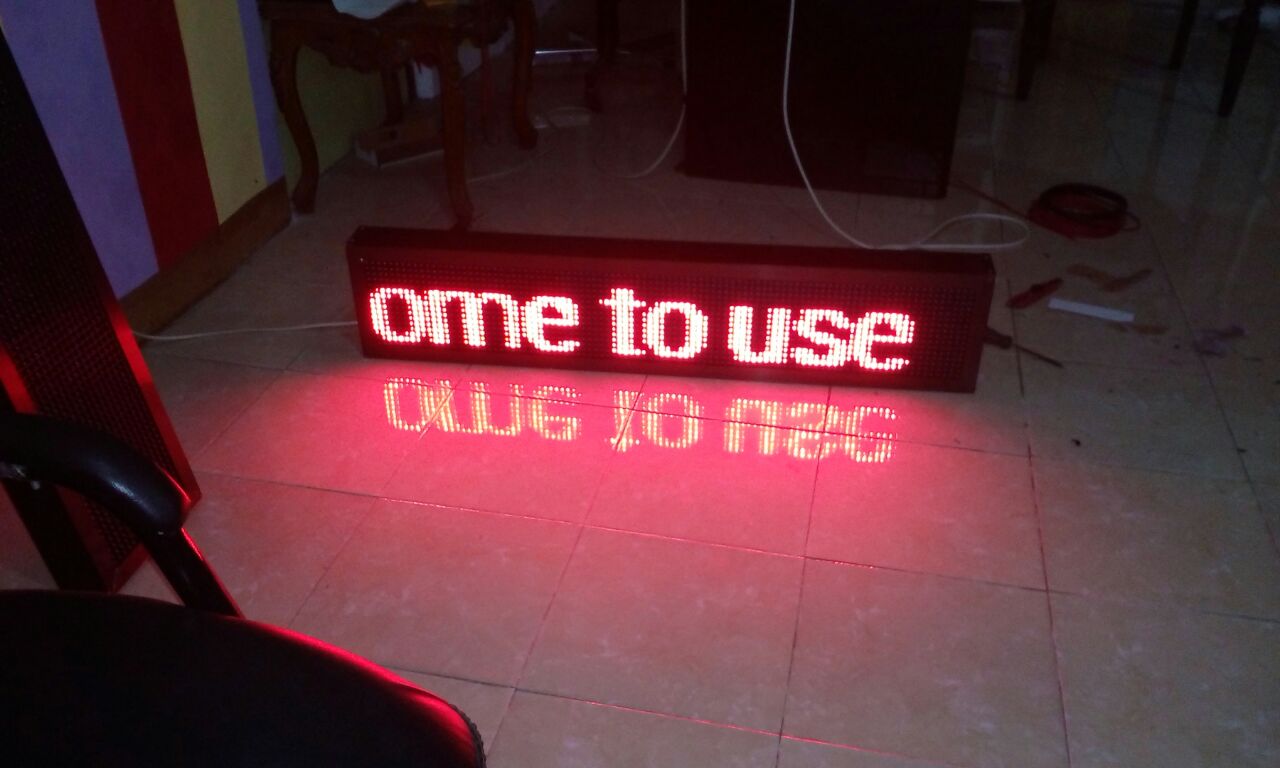 Running text menggunakan LED modul yang menampilkan tulisan atau gambar yang dapat di setting di HP atau laptop menggunakan aplikasi khusus, karena sifatnya yang dinamis, running text digunakan untuk menyampaikan informasi terbaru mengganti tulisan sesuai keinginan setiap waktu.